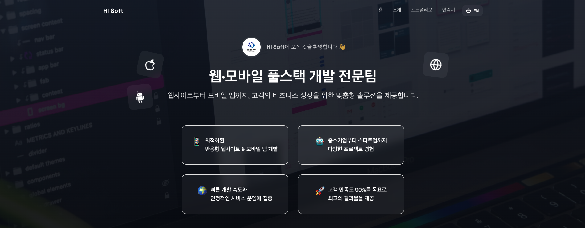 HI Soft는 디지털 솔루션 개발 전문팀으로, 웹과 모바일 제품 개발에 특화되어 있으며, 다양한 스타트업의 프로젝트를 성공적으로 완수했습니다.